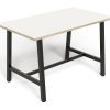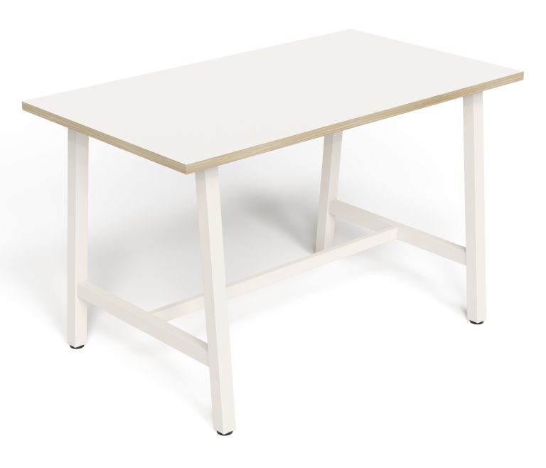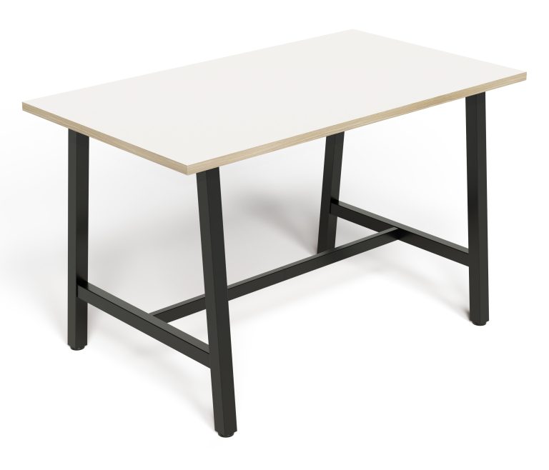 • The Lean Tall Tables feature unique angled 50×50 powder-coated steel legs
